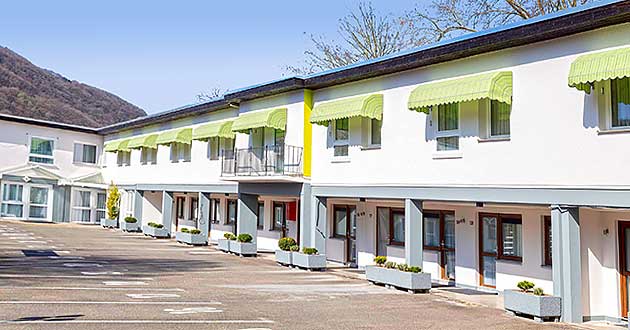 Hinweis für Raucher: Die Komfort Doppelzimmer im Erdgeschoss des Nebengebäudes haben direkten Zugang auf den Parkplatz – jedoch keine Terrasse. Doppelzimmer Superior Stadt- und Rheinseite: